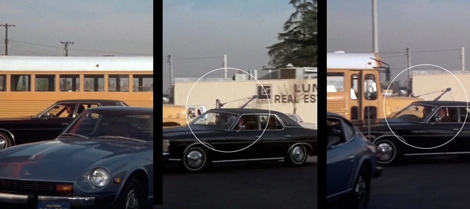 - When Stone, Morgan and Raines' car pulls into Harry's Garage, the camera mount can clearly be seen on the vehicle. When it parks next to Harry's bus, the camera mount has disappeared.