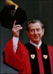 Accepting an honorary degree in 1998 from Boston University.