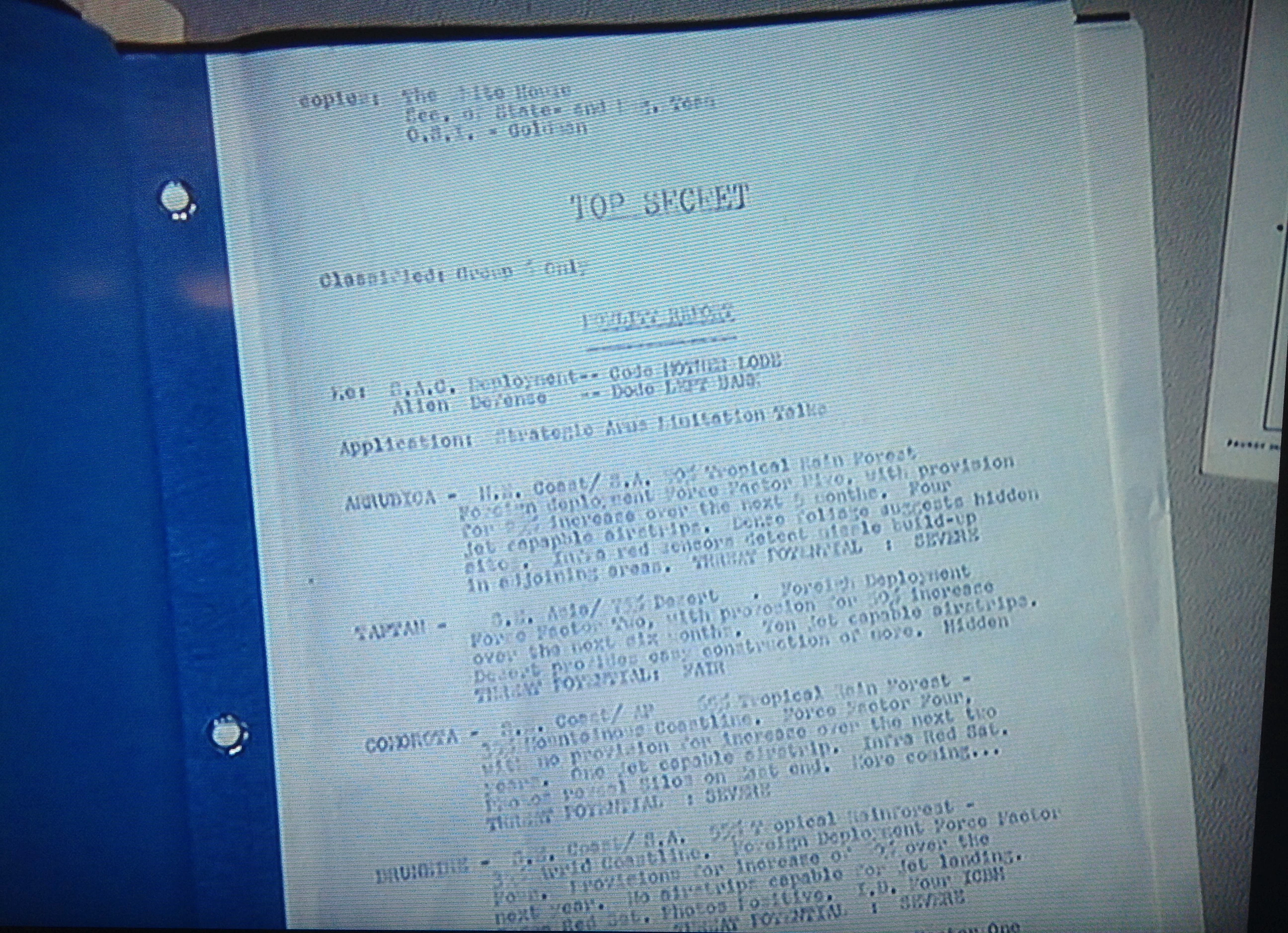 The final pages of the Howlitt Report are a global map with codes regarding SALT, MOTHER LODE, and LEFT BANK. It is classifed Top Secret for Class 6.