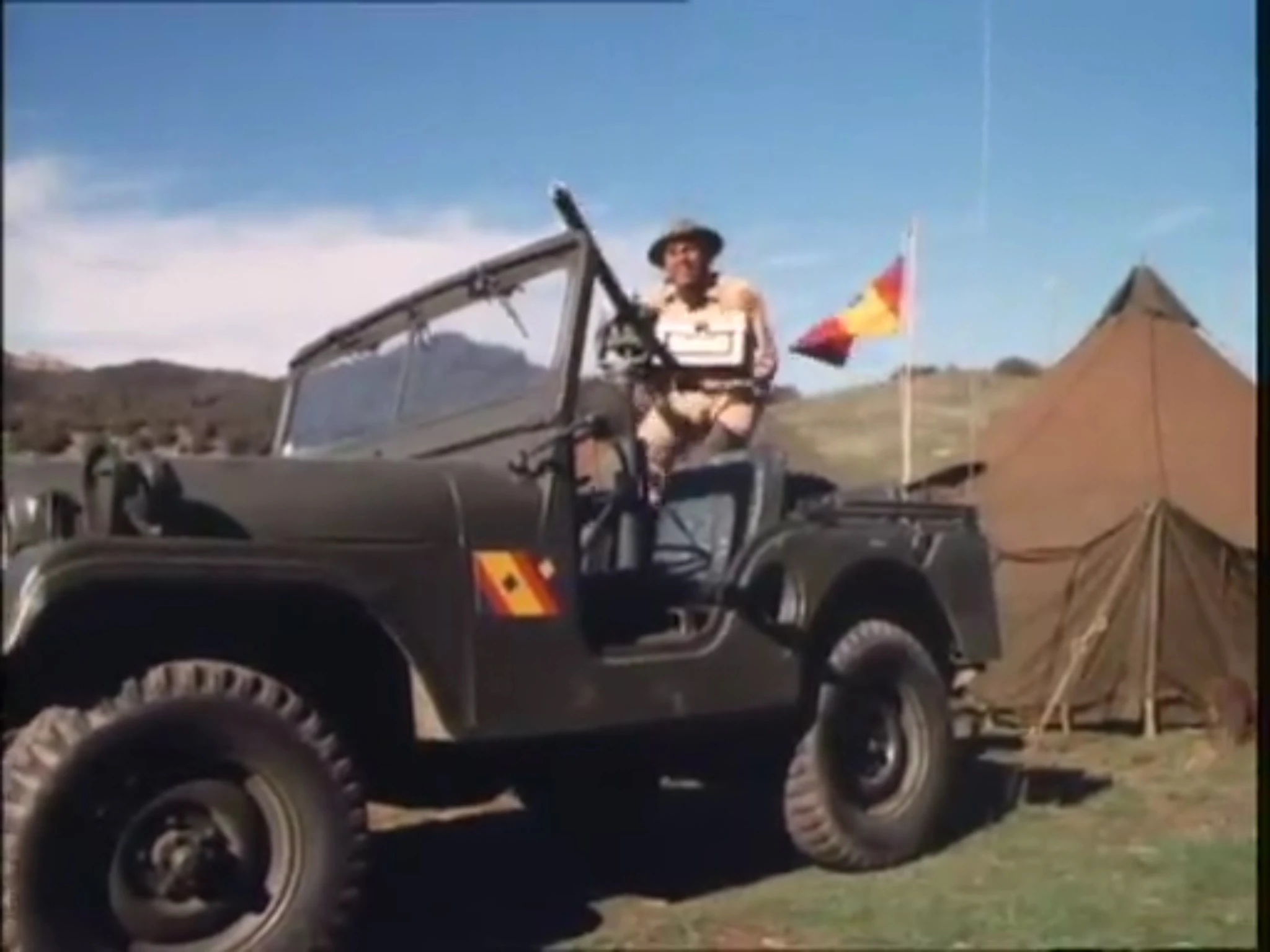 Mgunda airstrip. Note the flag of Mgunda on the jeep and in the background.