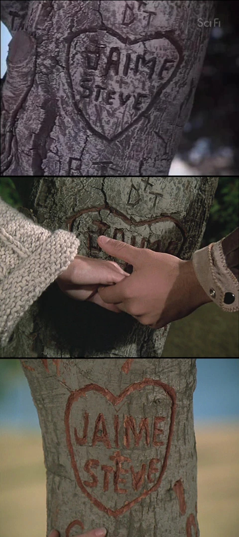 - The tree with the "Jaime+Steve" carving is different from the one in Return of the Bionic Woman Part II.